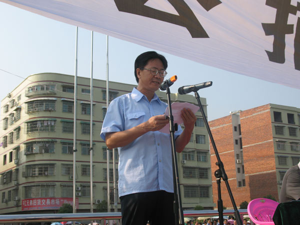 县委常委、政法委书记洪志凡在公捕公判大会上作重要讲话。