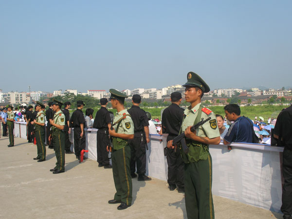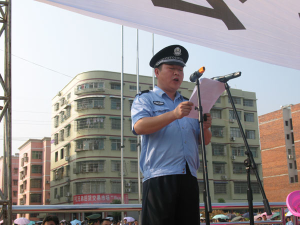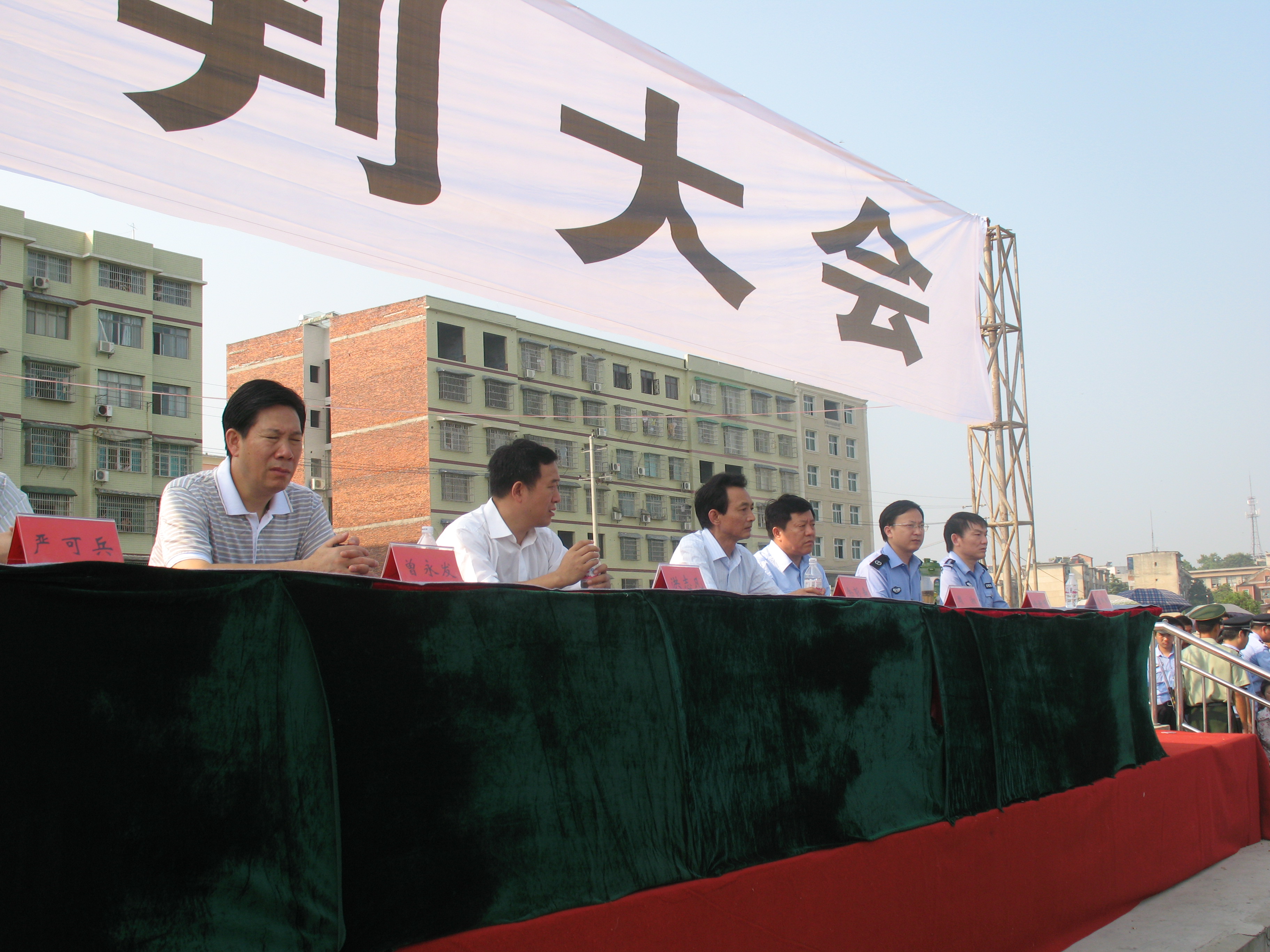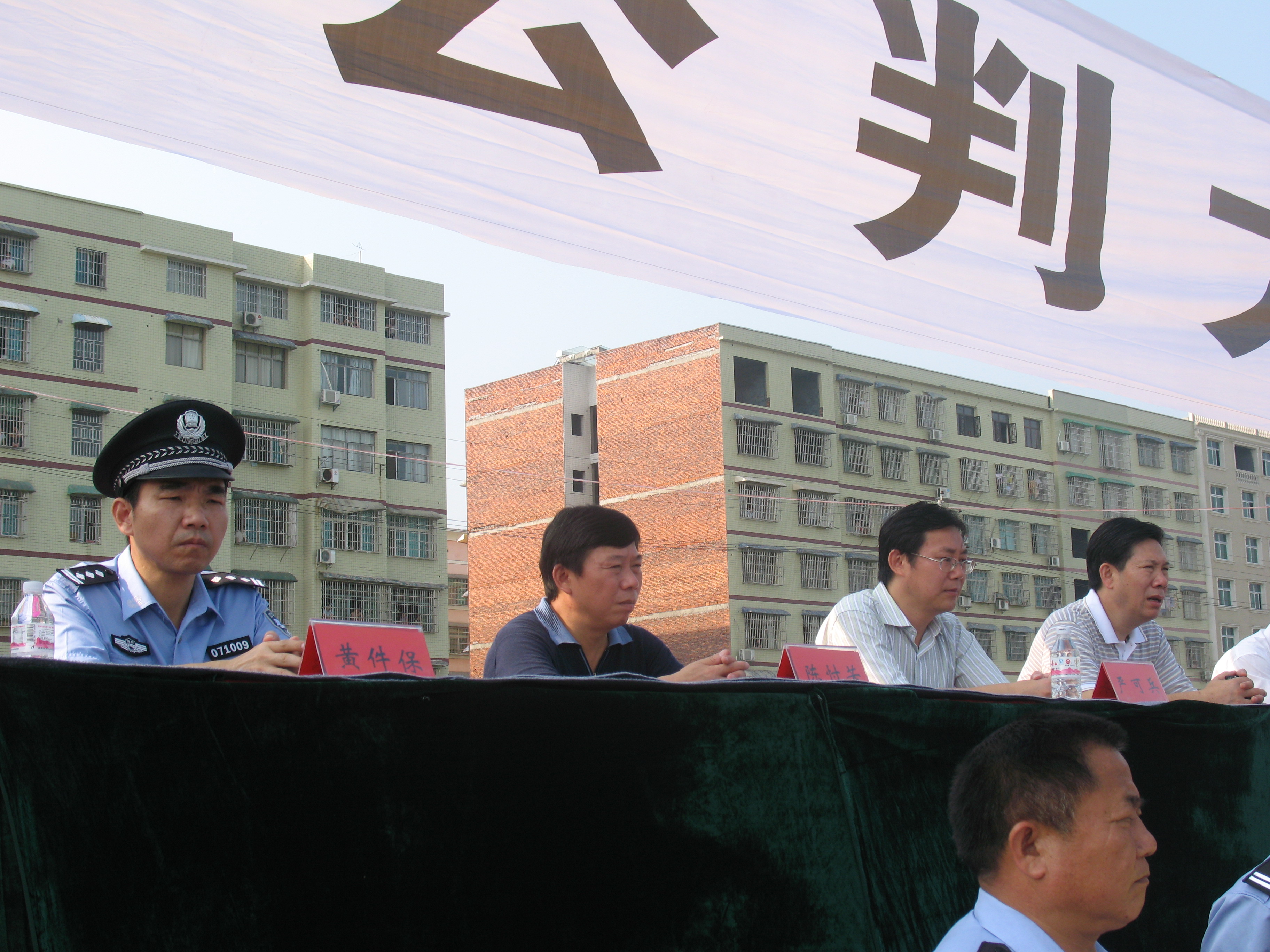为惩罚犯罪、震慑犯罪,为迎接60周年国庆营造稳定和谐的社会环境,今天上午,我县在县体育场召开了声势浩大的公捕公判大会。县委副书记曾永发,县委常委、政法委书记洪志凡,县委常委、副县长严可兵,县人大副主席余彭寿,县政协副主席陈忖芳及公、检、法、司等部门负责人出席大会。数千名干部群众参加大会。