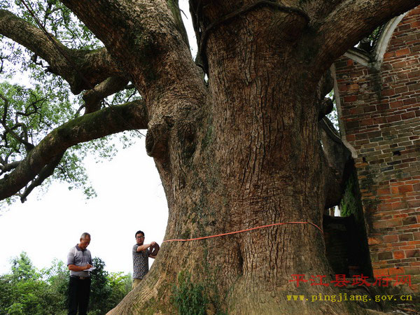 这棵古樟树高30多米,树冠投影面积达1590多平方米,粗壮的树干需9名壮汉张开手臂才能合抱。当地流传,此樟由唐文德元年因不满朱温夺政,弃官举家迁至平江的吏部尚书吴璋所植,距今约1200余年。据该县绿化办主任刘崇兴介绍:“此樟经他们考证,年代至少在1000年以上,但是否由吴尚书所植,还得由史学家进一步论证。”