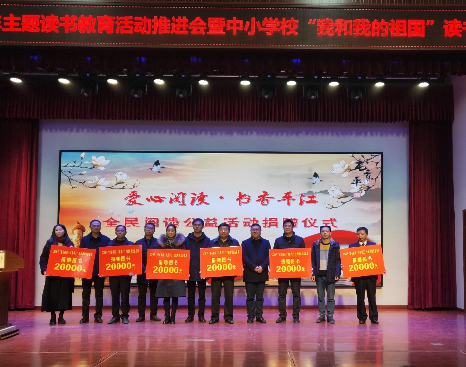 活动还宣读了表彰通报,对获奖单位和个人进行了表彰奖励。并举行了“爱心阅读·书香平江”公益捐赠仪式。安定镇农家书屋和平江七中等5所学校,共获得总额12万元的图书捐赠。