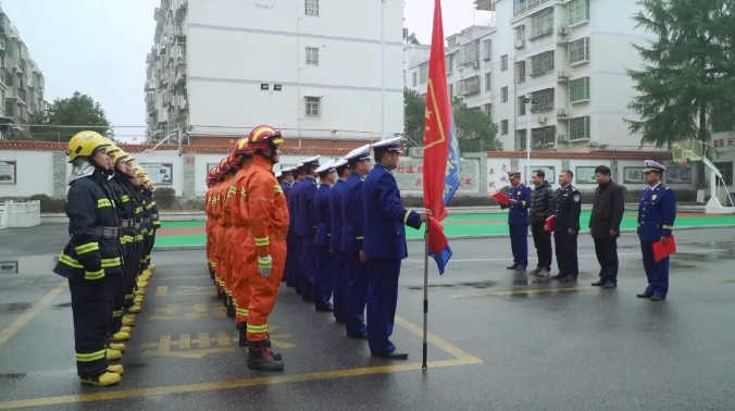 近日,平江县消防救援大队举行挂牌仪式,副县长、公安局长刘勇出席,县消防救援大队全体指战员参加。