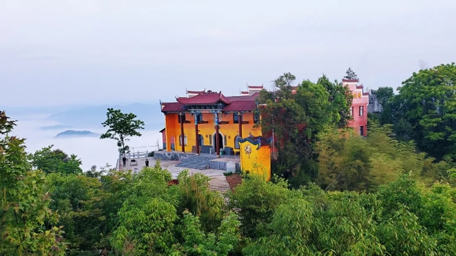 更难得的是日出前的云海,江面上铺满的厚厚的云雾盖住了群山,也盖住了汨罗江。只余山中的你,还有身旁这座红瓦黄墙的寺庙。只在此山中,云深不知处。