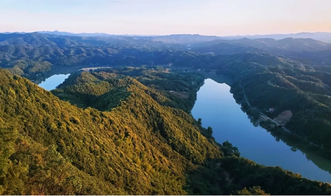 站在山顶极目远眺,峰峦叠嶂、青山碧水,风光尽收眼底;俯身近观,汨、昌两水在此交汇,形态呈现八卦奇观。