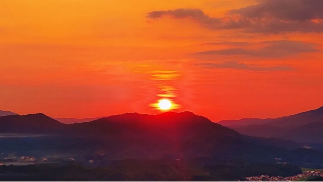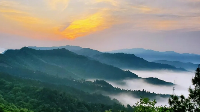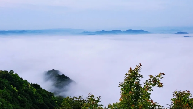 二、邂逅将军山上的云海,需在久雨初晴的早上、日出之前才有。山上的美丽日落,也只能在天晴才可观赏。国庆假期,虽然难以邂逅震撼的云海日落,但一幅淡雅的水墨山水画也可赏心悦目。