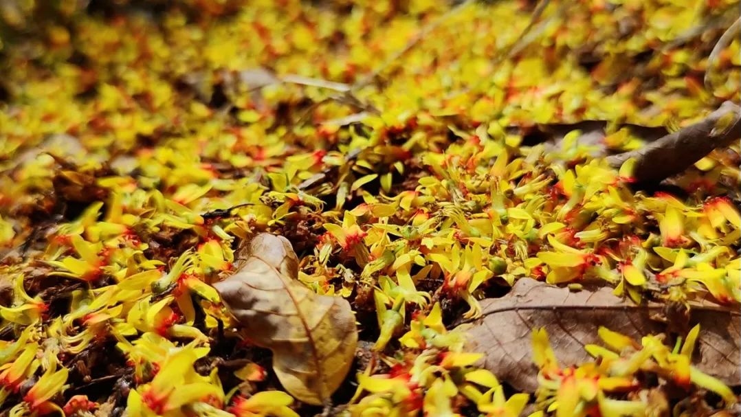 在深秋的平江街头,大部分的景观树都繁华落尽时,栾树却撑起了别致的景天,葱茏华盖上,密密麻麻的蒴果像无数的小铃铛,又像一个个红色的小灯笼,青绿、鹅黄与粉红相见,一树三色,异常美丽。