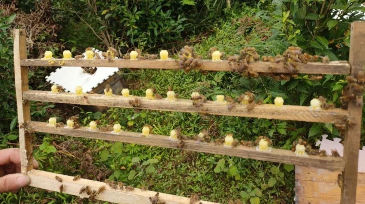 2016年,唐劲松毅然放弃在外创办的印刷厂,回到家乡发展养蜂业。父亲以前采用的是土法养蜂,每年只能割一次蜜,产量不高,唐劲松琢磨养蜂要走科学养殖的道路。“换不了蜂王,也治不了蜜蜂的病。而且取蜜就要毁巢,等于杀鸡取卵。”唐劲松说,土法养蜂不科学,扩大不了规模,发展不起来。