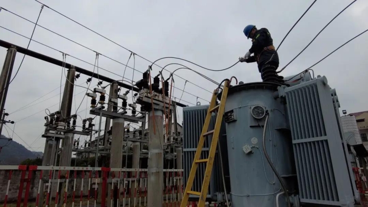 “桩头打磨完成,发热故障点已排除,请求送电。”2月8日9点半,在35千伏余坪变电站,县电力公司变电运检班工人在蒙蒙细雨中完成了抢修。半个小时后,该变电站一号主变开始恢复供电。