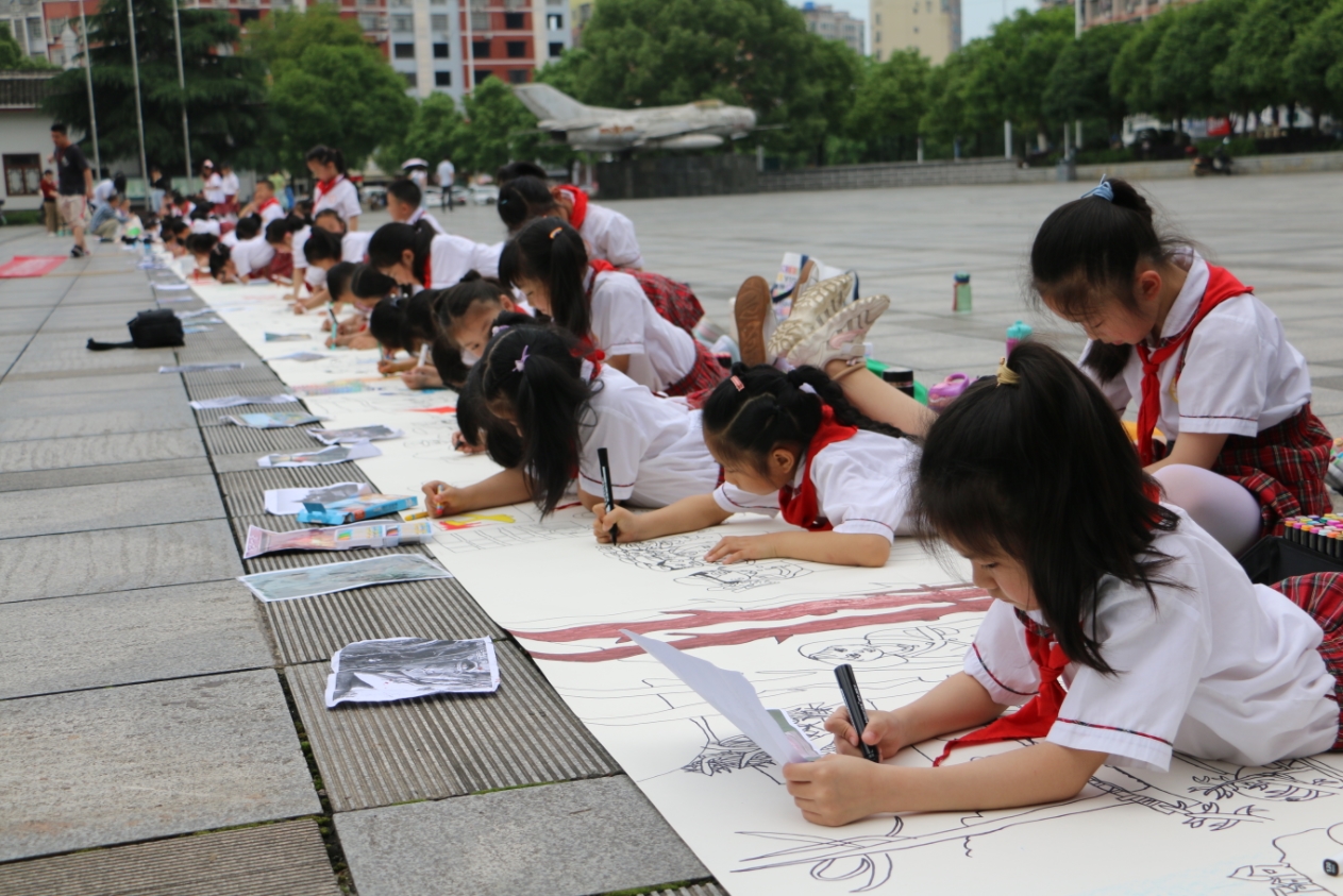 从画面的构思到色彩的搭配,孩子们每一步都一丝不苟,经过1个多小时的精心绘制,鲜艳的五星红旗和党旗、雄伟壮观的平江城楼、身经百战的开国将军、忠烈可嘉的革命烈士……一幅幅满含深情的作品呈现在大家眼前,孩子们用手中的画笔在百米长卷上共同描绘中国共产党在平江发展的百年风雨历程,向建党百年献礼。