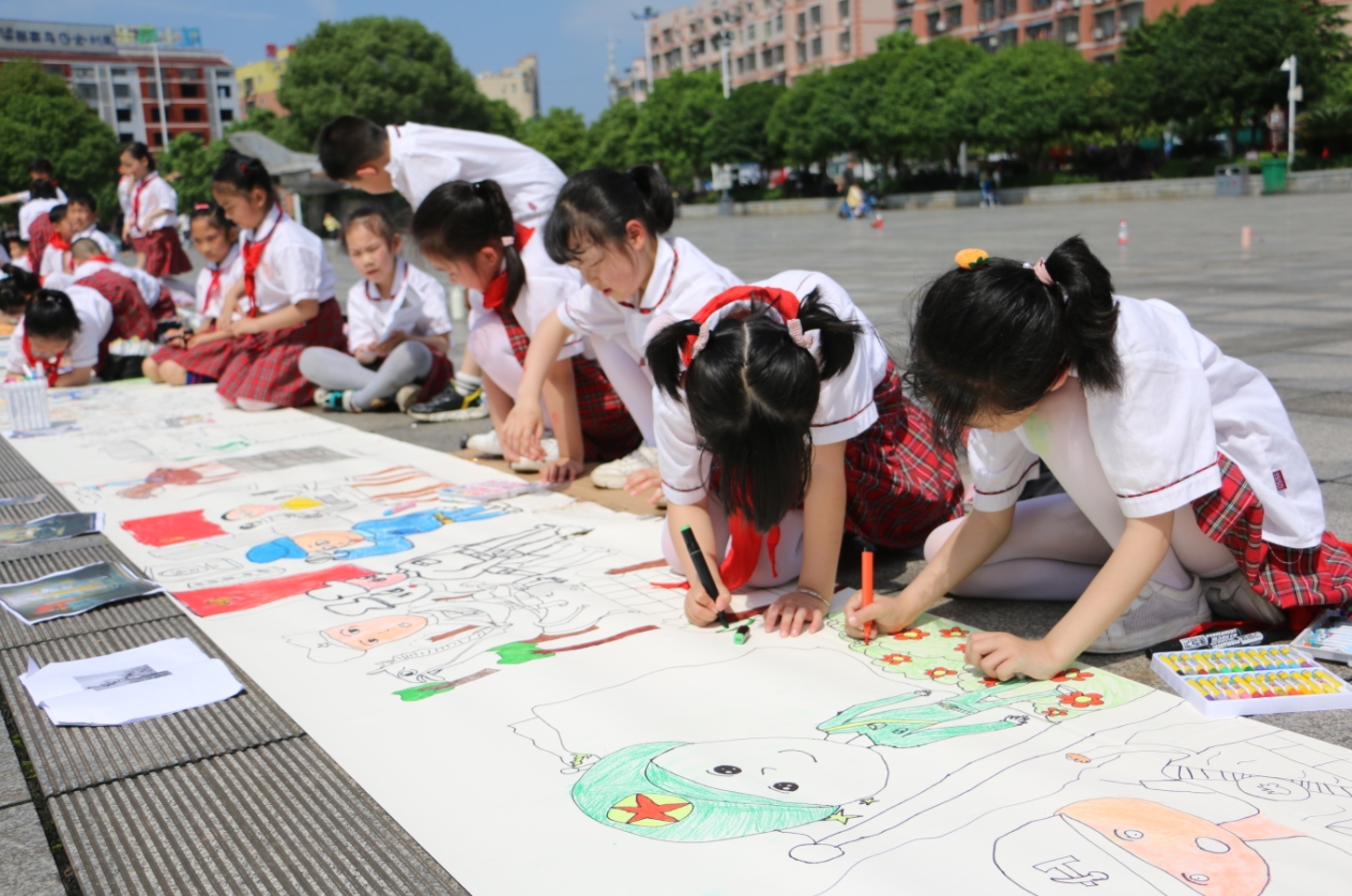 百名儿童在百米长卷上作画是种什么场景?童心向党他们今天用画笔表达了浓浓的爱