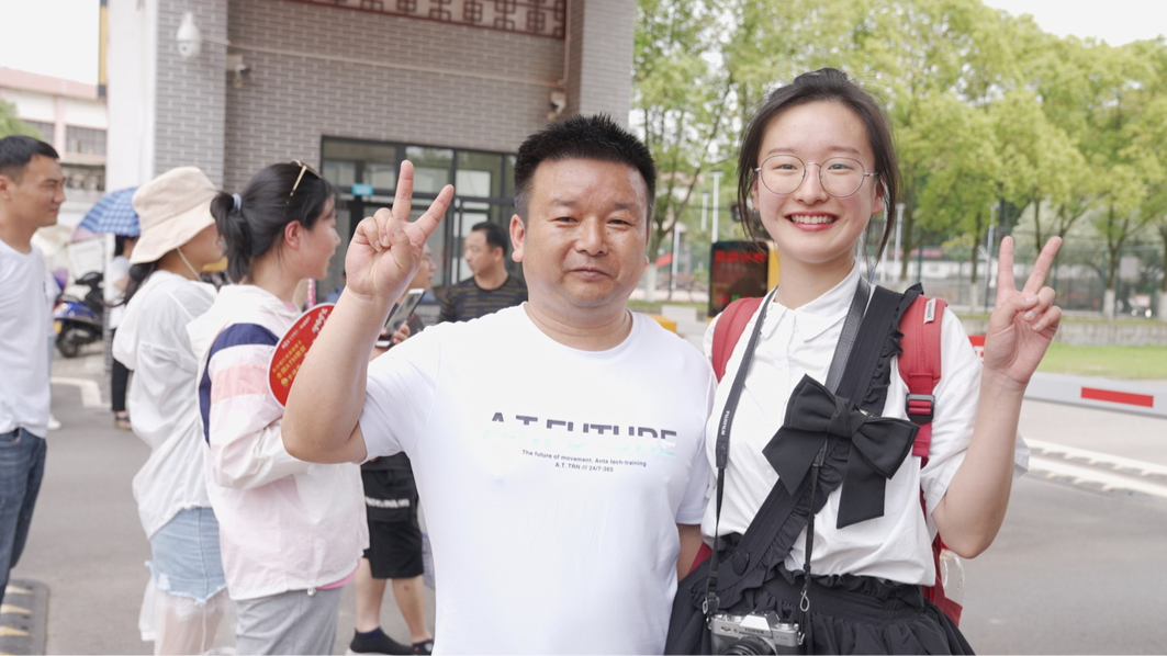 【父女】“停下笔的那一刻,没有感到特别激动,就像平时月考一样。”刚刚走出考场的女孩一脸轻松,跟父亲说着自己的感受,并和父亲留影,纪念这一刻。