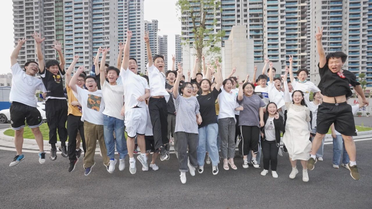 【战友】“大学,我们来了!”考试结束后,考生们在考场外合影留念。