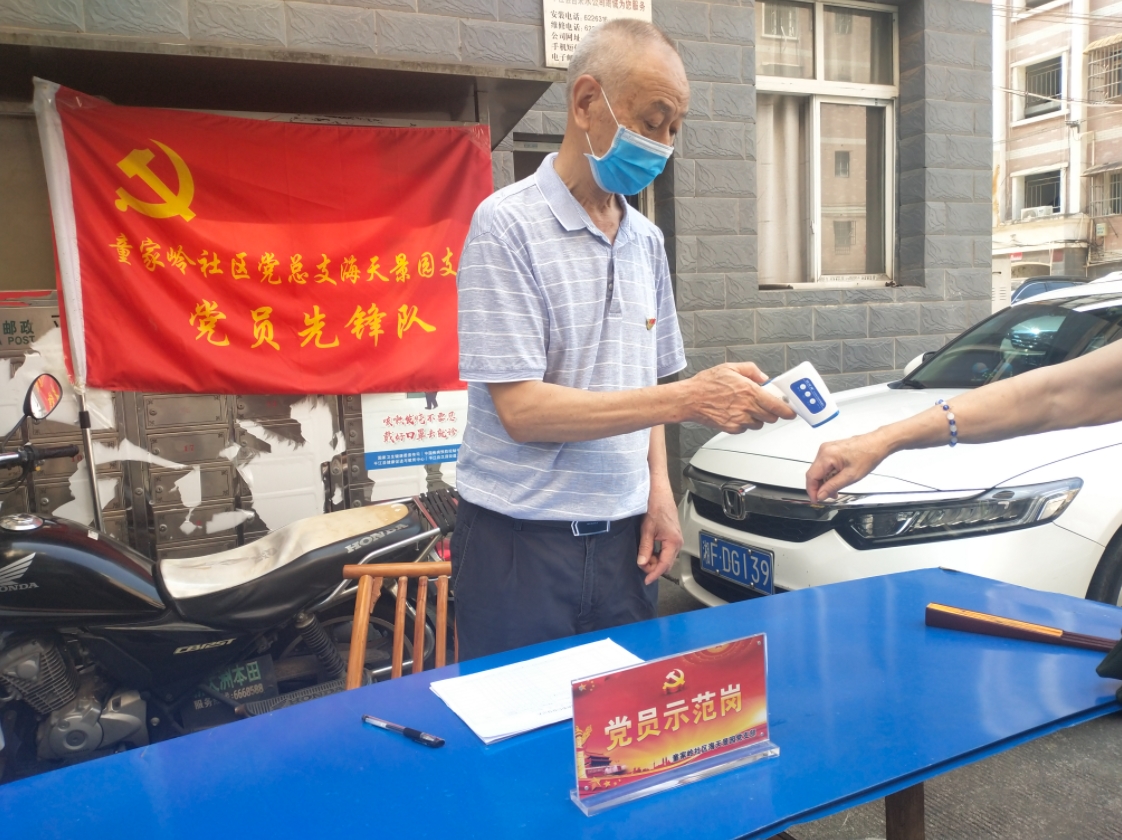 在连云小区入口处,老党员洪邦驹正在严格落实各项疫情防控措施,不厌其烦地提醒进出居民戴好口罩、出示行程码、健康码、测体温、登记。这样类似的话语、重复的动作,每天进行1000次以上,体能消耗比较大。洪邦驹说,尽管工作强度比较大,有时甚至得不到理解,但作为一名党员,就是要能在关键时刻勇于担当、冲锋在前。