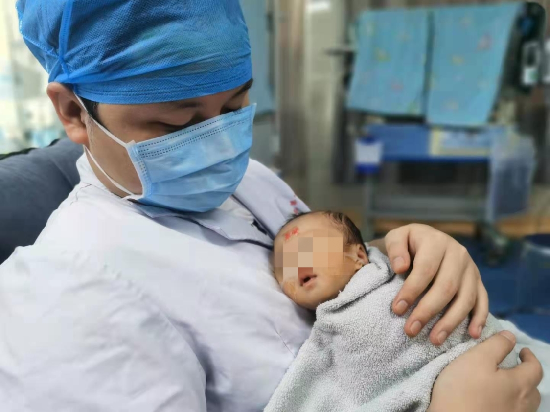 朱淼然是县第一人民医院新生儿科的护士长,尽管只有一个多月的时间,却与傅强一家经历了一段颇为跌宕的故事。傅强是新生儿科重症监护区的早产儿傅小宝(化名)的父亲,小宝因胎龄30周,出生体重仅1600克,于6月27日住进了新生儿重症监护病房。“为了宝宝能够尽快撤离呼吸机,我们让小宝妈妈进入病房,参与小宝的袋鼠式护理。”朱淼然说。然而计划赶不上变化,突而其来的疫情,小宝妈妈的袋鼠护理不得不紧急叫停。