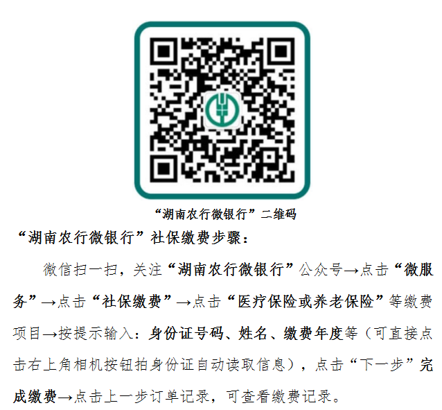 1、参保人员可通过微信扫一扫“湖南农行微银行”缴纳保费(见下方二维码1)。
