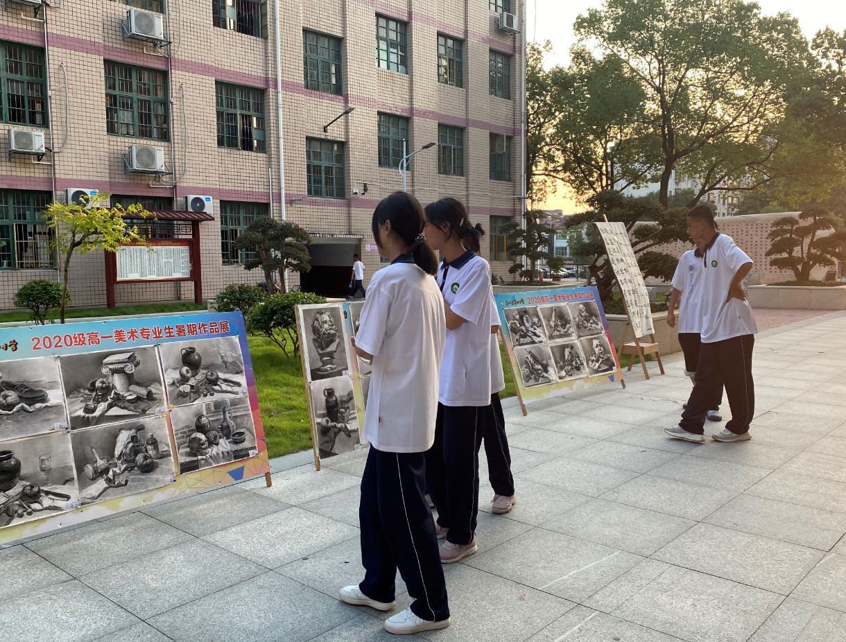据该班美术指导老师邱芳利介绍,399班目前在班人数44人,其中43个美术生,1个书法生,本次展出40幅暑假集训作业,几乎覆盖所有去集训的学生作品,作品以素描静物为主。高一进高二,主要学习内容以素描静物教学为主,学生学习效果很不错,在造型能力、塑造能力、画面处理能力方面有了很大的提升,通过本次展示活动,能很好地帮助他们增长学习成长的自信心,为后期更加严格的高考专业训练夯实基础。