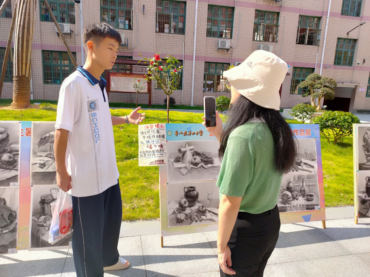 “这幅作品比例关系协调,明暗调子处理得当,画面真实感强。”日前,平江四中高二年级399美术专业班自主布展的“新时代·新生活”第25届全国中小学生绘画比赛优秀作品画展,吸引了不少师生驻足观赏,他们边走边兴奋地讨论着观后感,纷纷对该班同学短期训练后所表现出的专业水准和可喜进步赞叹不已。