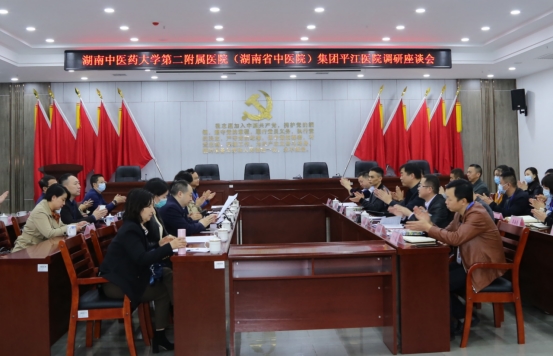 为进一步加强我县紧密型医联体建设,11月5日,湖南中医药大学第二附属医院党委书记杨声辉、院长李木清等一行到县中医院就医联体合作进行交流研讨。县卫健局局长熊昭明、中医医院院委班子、相关职能科室负责人参加调研。
