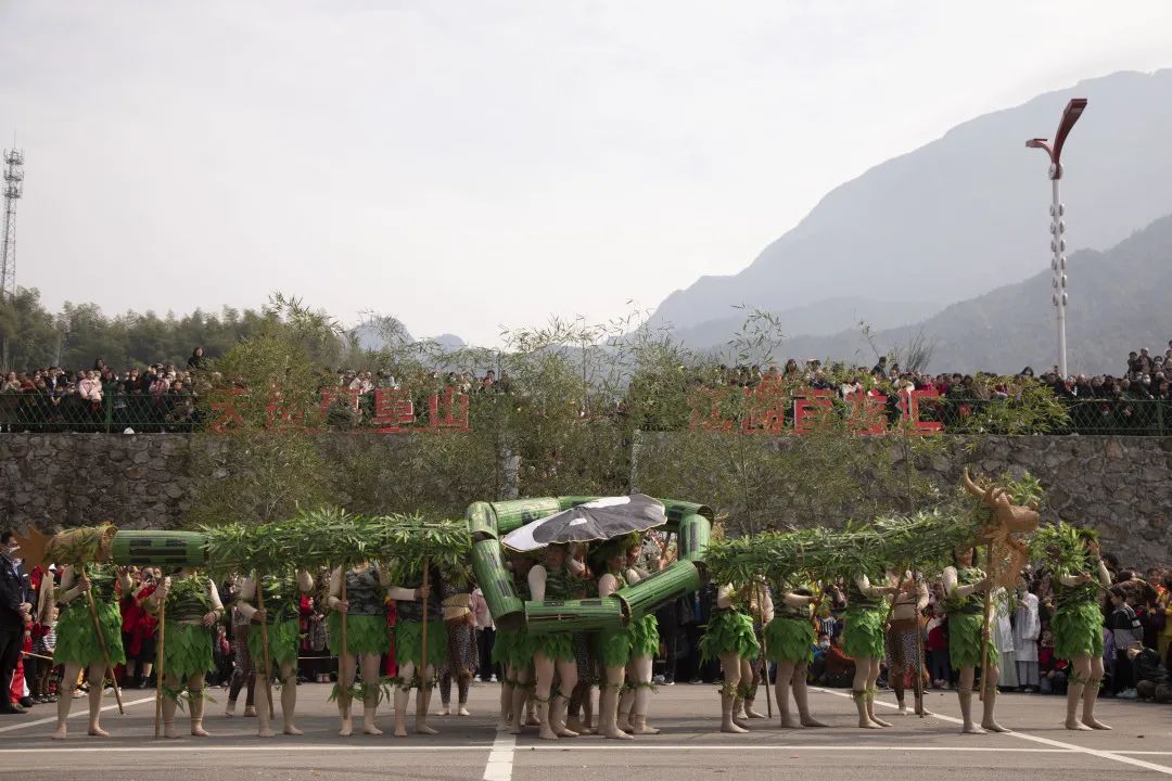 伏羲八卦竹龙舞起源于民间“二月二龙抬头”的传统节庆表演,通过原始装束的劳动妇女持竹龙表演伏羲八卦演练阵型,完成祭祖伏羲祈祷风调雨顺。