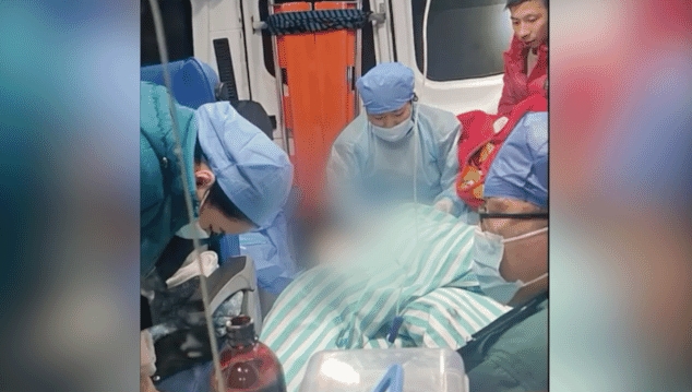 赶至安定大桥处,终于和安定院的救护车汇合,在医护合力下成功将产妇转车,“当时产妇的母亲和丈夫都受了伤,产妇的状态也不太好。”方文辉和另外两名医护马上争分夺秒给产妇做检查。寒冷雪夜,救护车闪烁的蓝光在黑暗的夜里格外温暖醒目,也让产妇的家属们格外心安。凭借多年的产科经验,方文辉判断产妇即将生产,可能等不到去医院,加上雨雪天气赶车会增加风险,他们当即决定将救护车停靠在马路边做好接生准备。