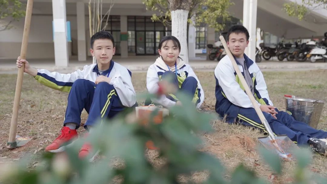 春风和煦的午后,桂花学校7年级的三名学生欧阳嘉乐、罗焐、吴彤欣忙活完,靠在树下享受春日里的绿意融融。