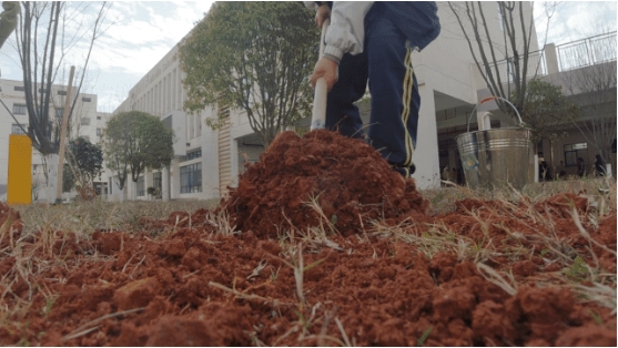 接着进行第三埋,将剩下的土埋入,与地面齐平。