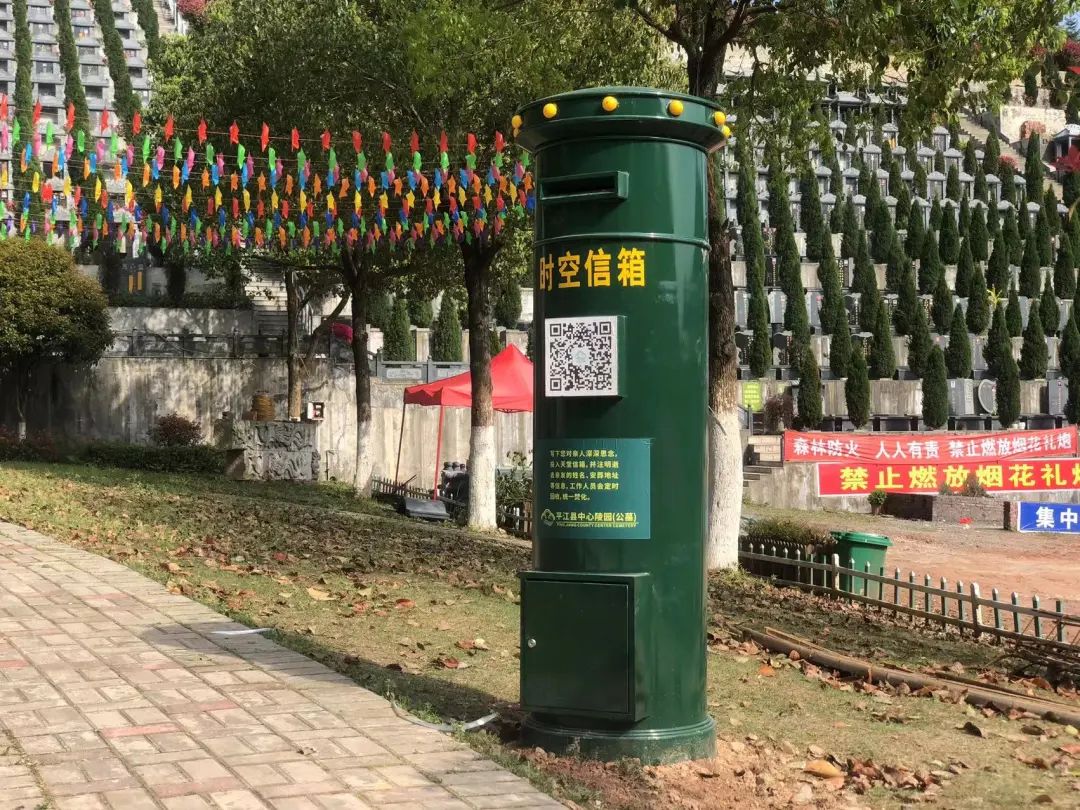 近日,县中心陵园打造了一个时空信箱,负责人陈昆建说“我们倡导用生态文明的方式给故人先辈送上自己的思念和敬意。”时空信箱最近就收到了第一封来信。