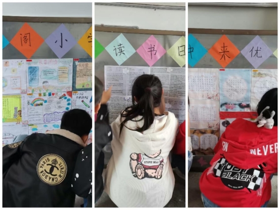课间操时,各年级纷纷上台进行了各种读书节目的表演,学校对优秀作品展的学生进行了表彰。学生们都被这浓浓的读书活动氛围所感染。