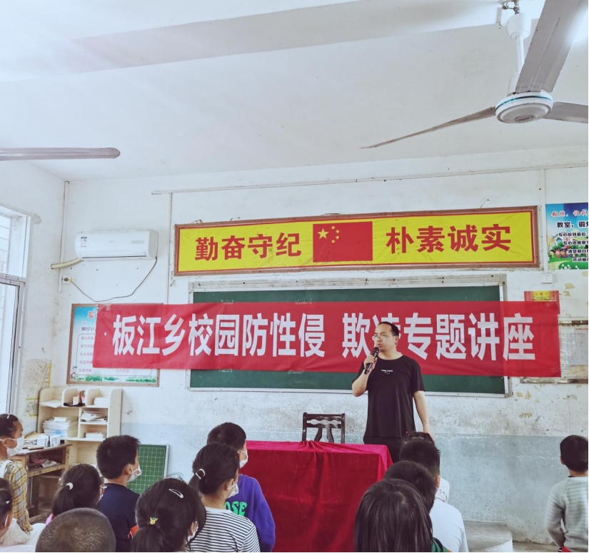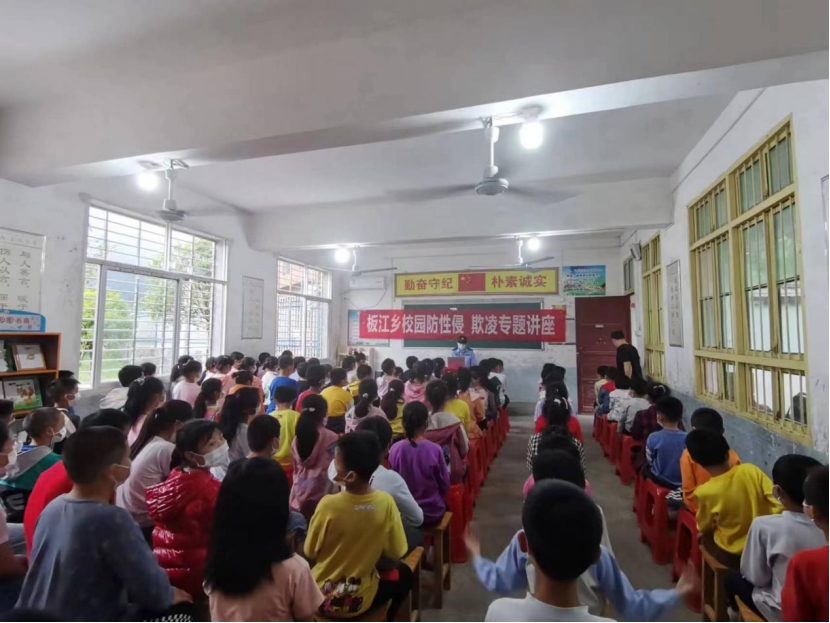 4月25日,电闪雷鸣,狂风大作,但也阻挡不了板江乡派出所指导员兼观音阁法制副校长赵鹊山殷切的“护蕾”步伐。他如约地给观音阁小学的学生们开展了一场热情洋溢的“防性侵、校园欺凌 ”室内安全教育专题讲座。