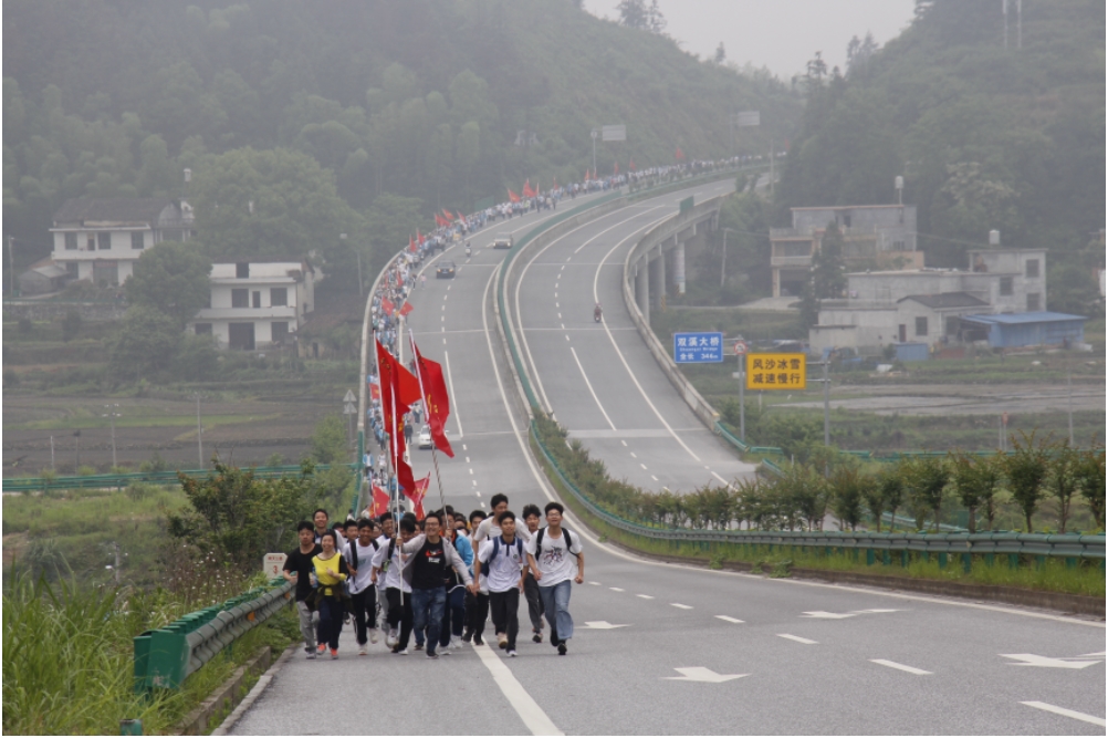 最爱垄头麦,迎风笑落红。在距离全国高考仅剩下15天之际,为缓解高三师生长时间备战高考的压力与焦虑,为师生提供一个亲近自然、交流情感的机会,培养学生吃苦耐劳、坚持不懈、自信自强的意志品质,5月21日,平江四中高三年级组织700余名师生以及部分家长,选择全程徒步的方式,就近拉练至7.5公里外的天岳幕阜山景区入口处阜山停车场。一路红旗招展,洒下一路欢歌笑语,充分展示了高三师生自信、昂扬、从容的良好心态与必胜信念。