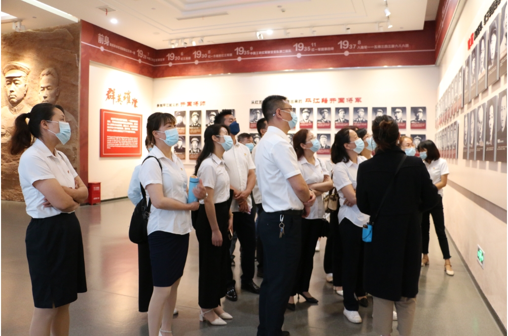 会后,参培党员来到平江起义纪念馆,开展主题教育实践活动。在邓丹的带领下,全体党员重温入党誓词。解说员指引大家瞻仰烈士遗像,参观遗物文献,了解烈士英雄事迹。在一幅幅历史照片和一件件珍贵遗物中,同志们回望和找寻那段烽火岁月,缅怀革命先烈丰功伟绩,传承百年革命奋斗精神,坚定自身理想信念。