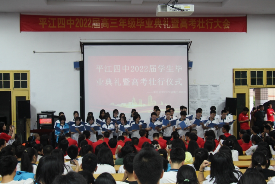 6月3日,恰逢端午传统佳节,平江四中在阶梯教室举行2022届高三年级毕业典礼暨高考壮行大会, 即将参加全国高考的630多位同学与高三56名任课教师团队以及部分家长欢聚一堂,共同见证这个难忘的时刻与这场青春的盛典。
