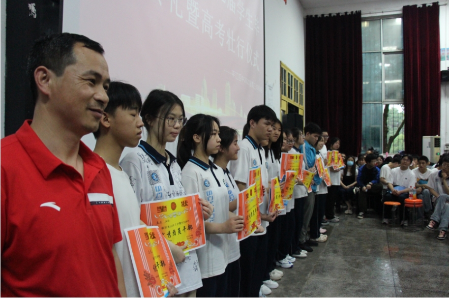 会上,教导主任钟弄璋代表学校宣读了2022届高三毕业生优秀对象表彰决定,授予杨文杰等30位同学“优秀毕业生”称号,欧阳怡静等15位同学为“优秀共青团干部”,欧阳雨芹等15位同学为“优秀共青团员”,学校校长与年级组负责人为他们颁奖并合影。