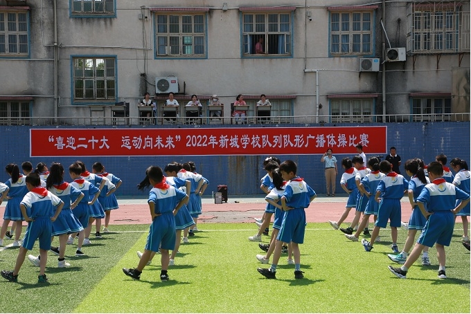“锻炼身体,快乐成长!”“我运动,我健康!”为展示新城学子的精神风貌,规范学生的广播体操动作,提高学生的身体素质,6月8日至10日,新城学校在该校操场上举行了“喜迎二十大 运动向未来”广播体操比赛。