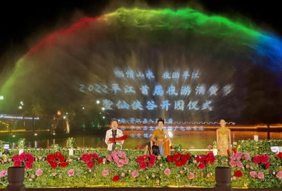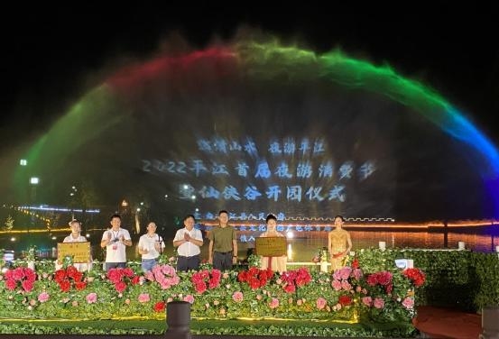 6月14日,安定镇长田村红莲兵寨仙侠谷举行2022平江首届夜游消费节暨仙侠谷开园仪式,县委常委、宣传部长田浩、县政协副主席潘如意、县文旅广体局党组书记宋炼钢等相关部门领导参加开园仪式,来自长株潭地区的近2000名游客成为了峡谷夜游的第一批“体验官”,红莲兵寨、连云山大峡谷、梦幻谷、长寿秘境、玉蓝湾获“平江最美夜游景区”称号。