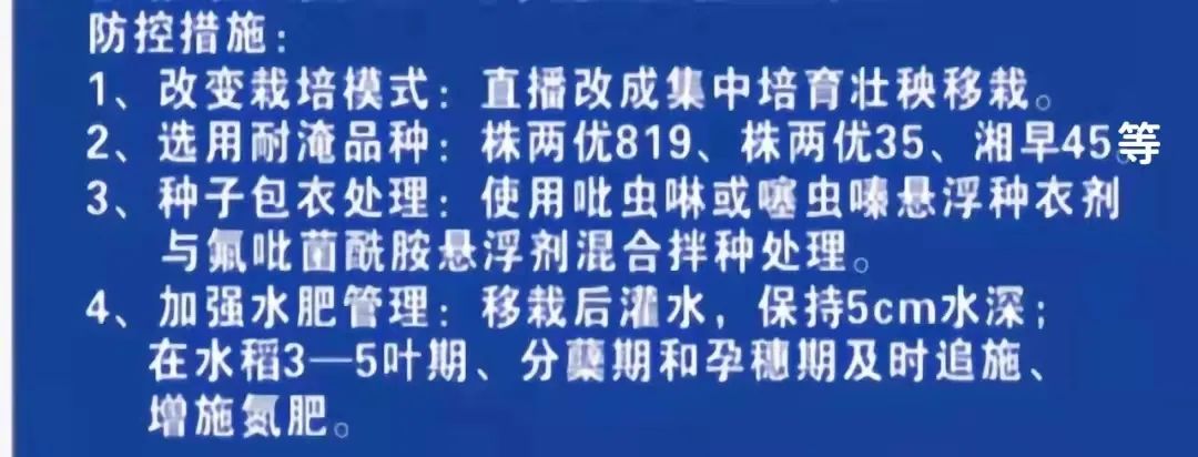 水肥管理:水稻根结线虫病发生地,在水稻3-5叶期、分蘖期和孕穗期应及时追施、增施氮肥。中度发生区、灌溉条件便利的地区可种植耐淹水品种,播种后5-7灌水栽培,保持5cm水深。