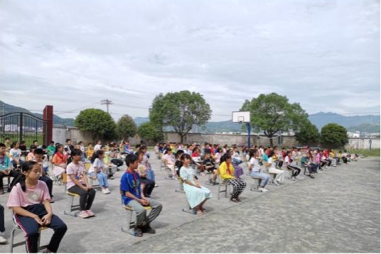 忠龙小学位于山清水秀的三墩乡忠龙村,全校共有10名教师和123名学生。课堂伊始,孩子们在老师的组织下有序来到操场,县人民法院民事审判二庭庭长李霞为孩子们带来一场法治知识课堂。