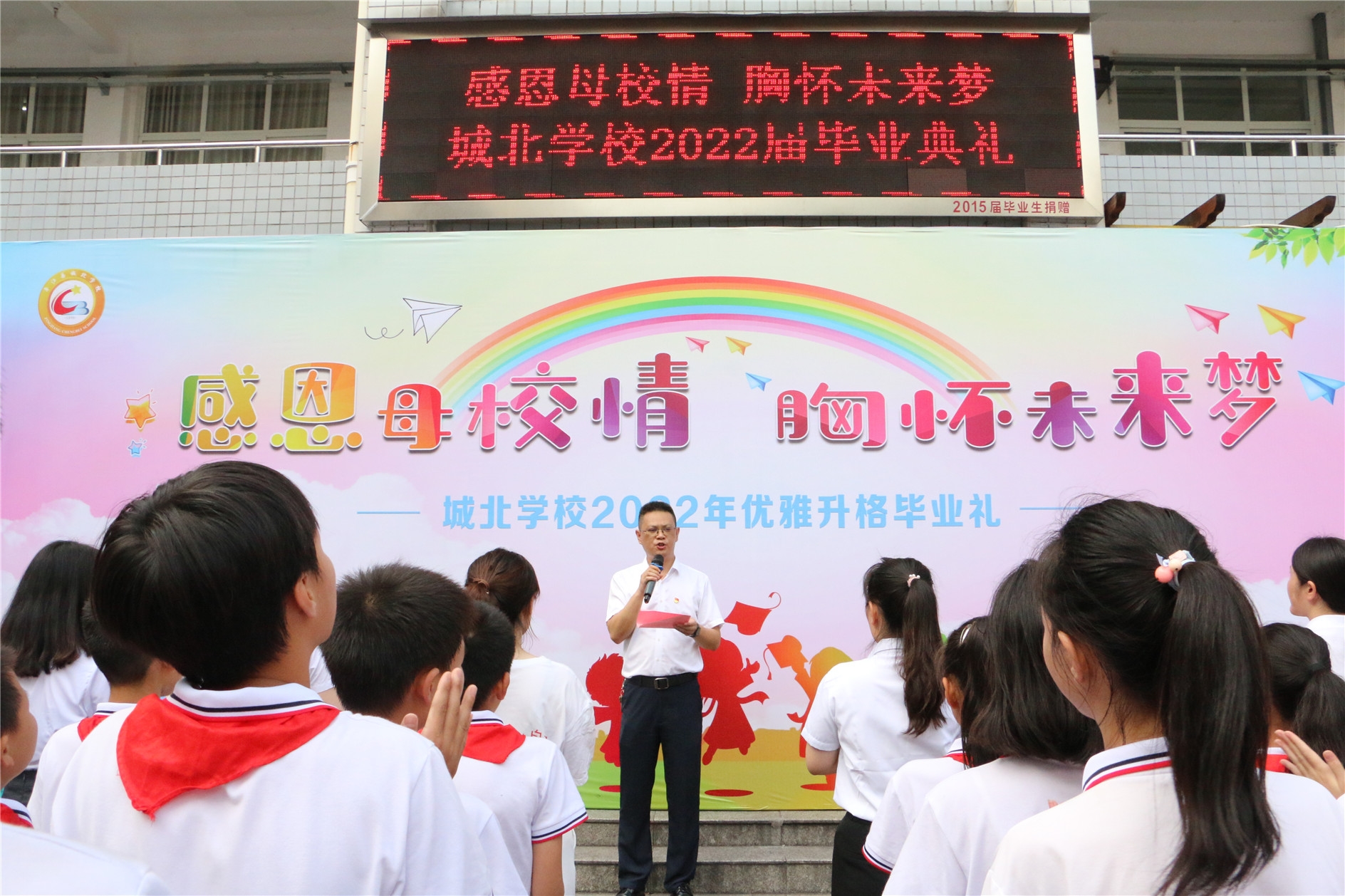 6月30日下午,借读于桂花学校的城北六年级学子“回家”,参加母校为他们举行的“优雅升格”毕业典礼。活动主题为“感恩母校情,胸怀未来梦”,800名师生和家长相聚操场,演绎出一曲温情动人之歌。