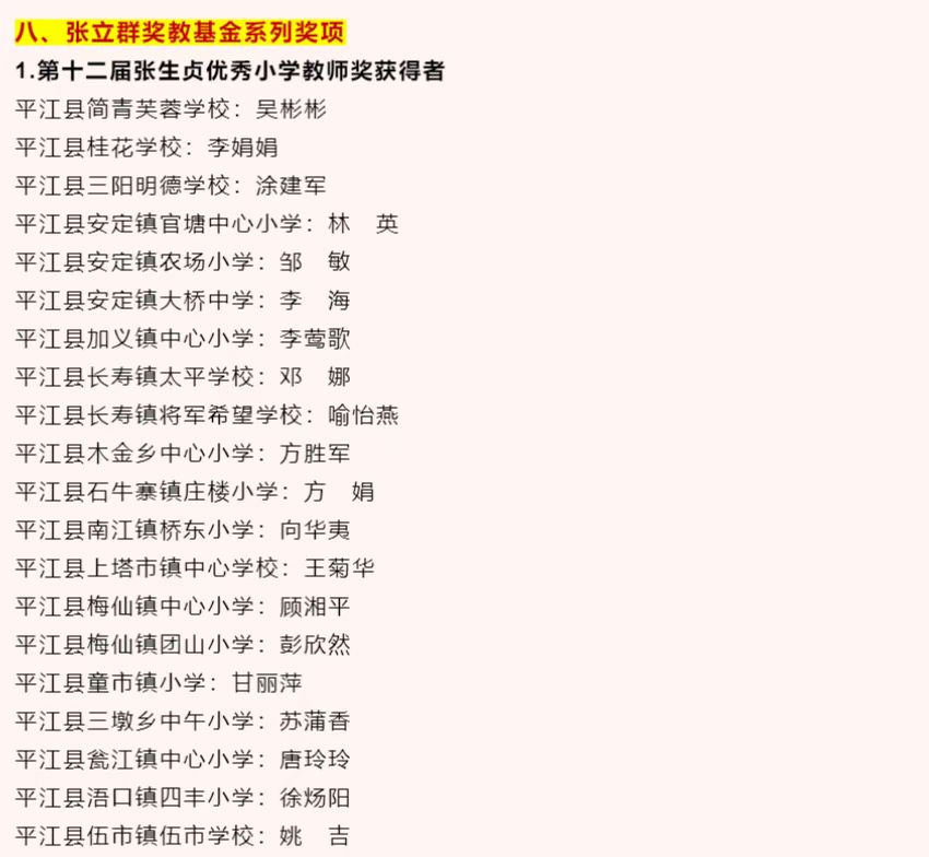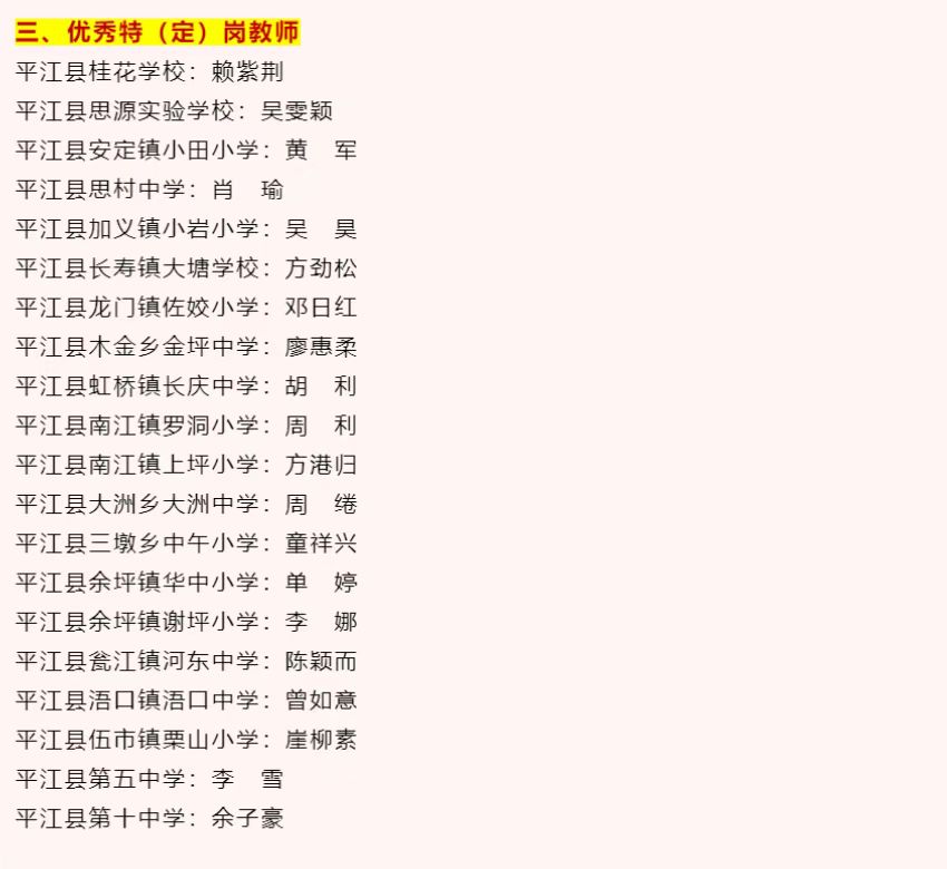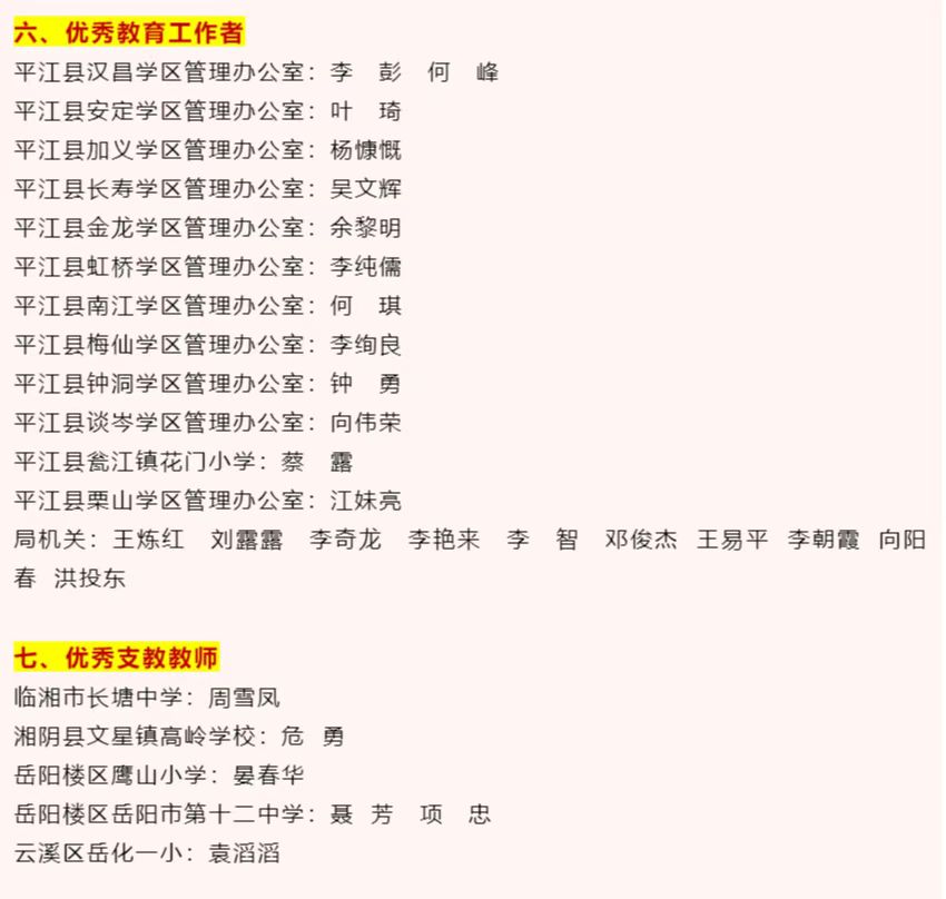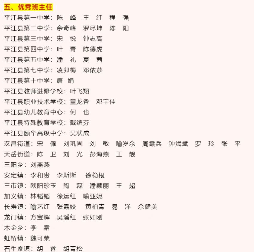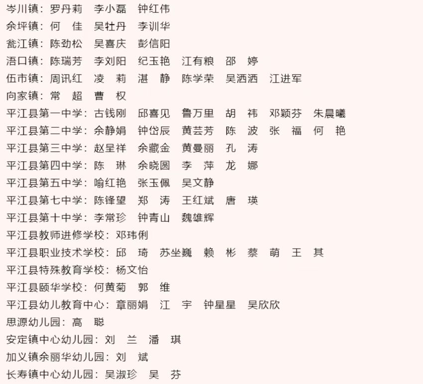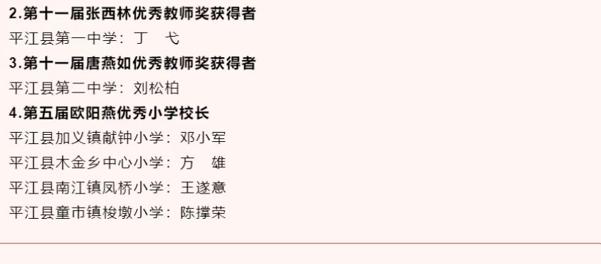 迎接党的二十大,培根铸魂育新人。希望受表扬的先进个人珍惜荣誉,不骄不躁,再接再厉。全县广大教师、教育工作者和社会各界要向先进学习,学习他们热爱教育事业,为人师表,开拓创新的优秀品质,为平江教育事业高质量发展作出新的更大贡献。