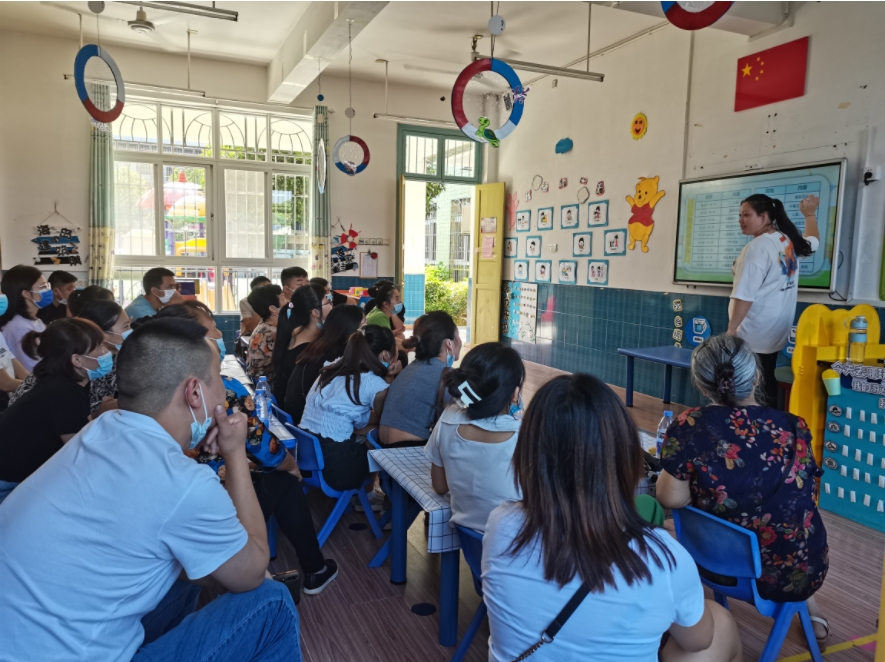 在随后的分班家长会中,各新生班班主任就班级情况介绍、幼儿一日生活常规、教学目标和教育理念、园本特色课程、本学期重点工作、班级安全工作等方面做了重点阐述,并分析幼儿的年龄特点并给予家庭教育的具体建议 。最后,“揪尾巴、抓鸭子、抢杯子、撕名牌.....”等好玩的互动游戏让家长会中升温,在欢乐的氛围中让家长了解游戏背后的教育真谛,感受游戏的乐趣。