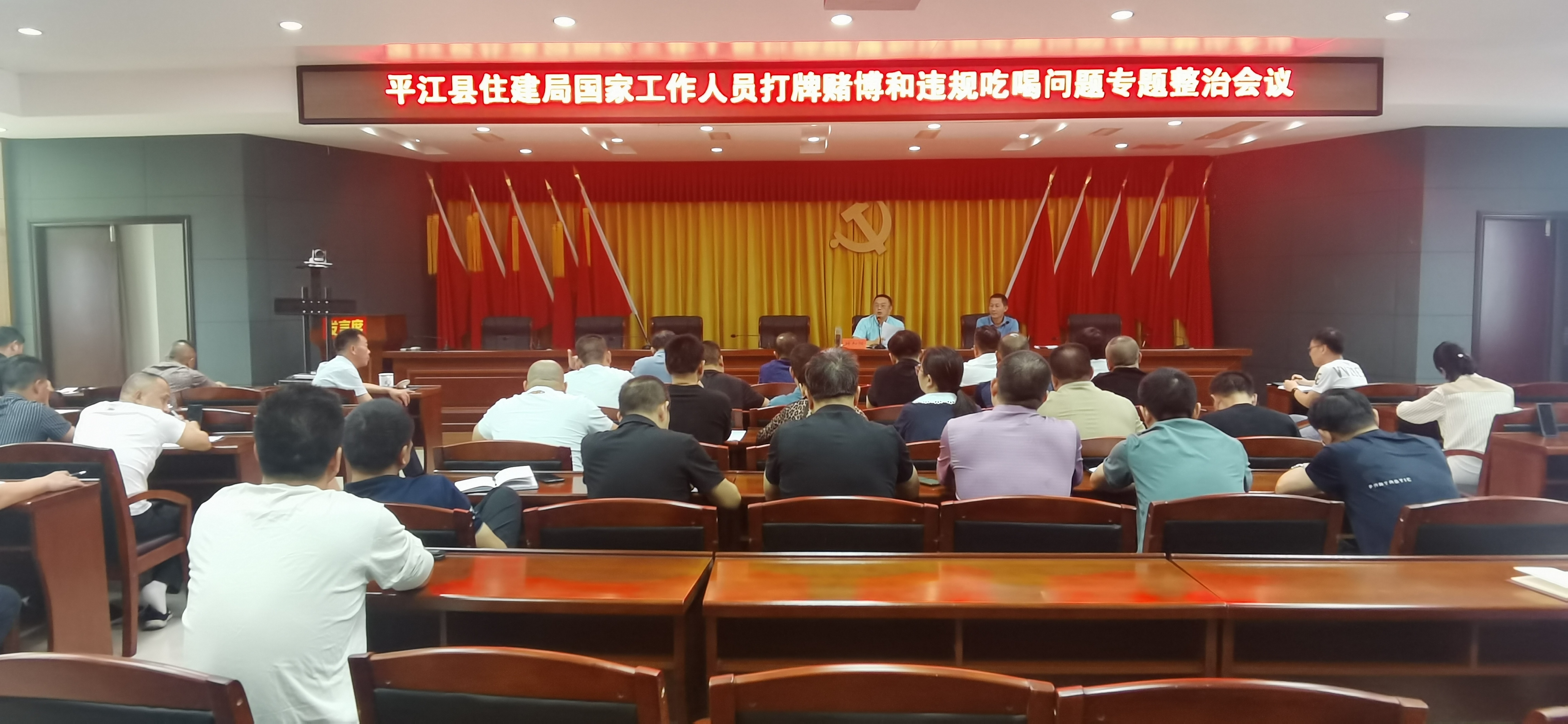 9月23日下午,县住建局召开国家公职人员打牌赌博和违规吃喝问题专项整治工作会议。党组书记、局长叶和阳主持会议,全体党组成员、局务会成员、机关纪委书记、全体股室负责人参加会议。