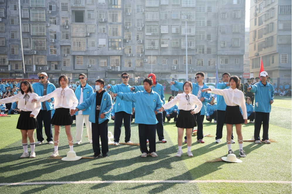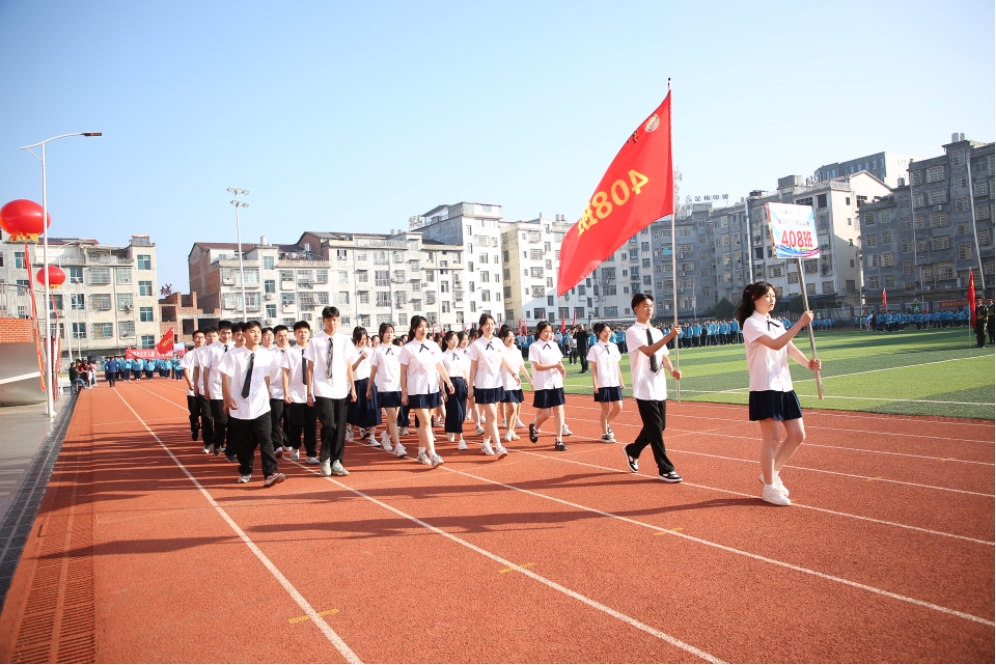 从高三390班至高一430班,在40位班主任的引领下,各班级以整齐的队形、昂扬的风采、特色的节目依次通过主席台。同学们有的挥动小国旗和气球,有的穿着民族汉服和个性文化衫,有的手擎“高考必胜”“冲刺吧,少年”等祝福标语牌,脸上洋溢着青春的笑靥,尽情展现着班级风采与运动激情。高一13个班级在年级组的统筹安排下,各班在短时间内排练出了一个表演节目。如420班带来的情景剧《锄禾日当午》,422班的古典舞《敦煌》,428班的中国风编舞《骁》,419、424、428等班级的音乐串烧与爵士舞等,给观众留下了鲜明的印象。