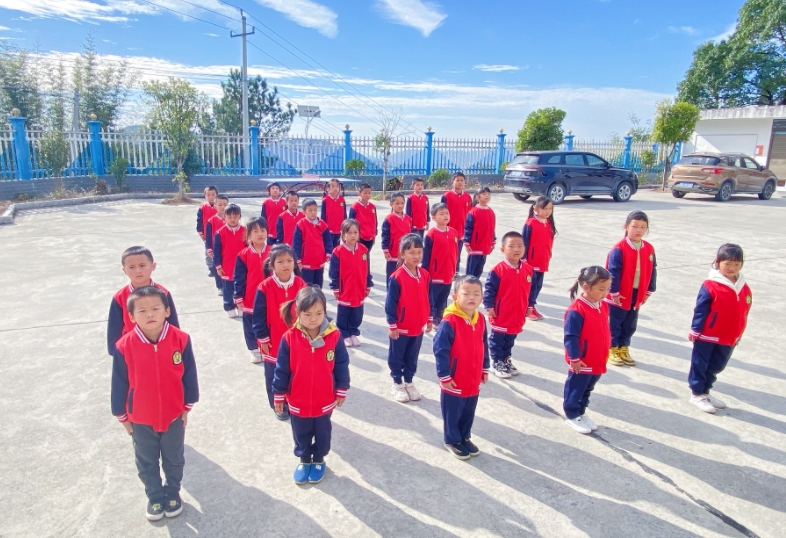 时近霜降,凛冬将至。生平第一次穿上新校服的积谷孩子们身上暖呼呼的,心里暖洋洋的。在老师的带领下,孩子们兴高采烈地玩起了“时装秀”。(邱世交)
