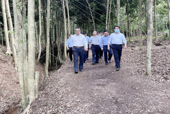 图为岳阳市委书记曹普华(右一)在平江珍贵树种(闽楠)基地巡林