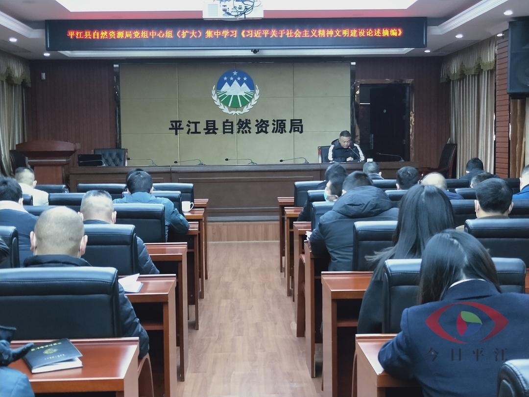 为深入学习贯彻习近平总书记关于社会主义精神文明建设的重要论述,推动新时代精神文明建设高质量发展,进一步加强全局干部职工做好精神文明建设的责任感和使命感。12月6日,平江县自然资源局组织全体党组成员、局属各单位负责人召开局党组中心组(扩大)集中学习会,集中学习《习近平关于社会主义精神文明建设论述摘编》。