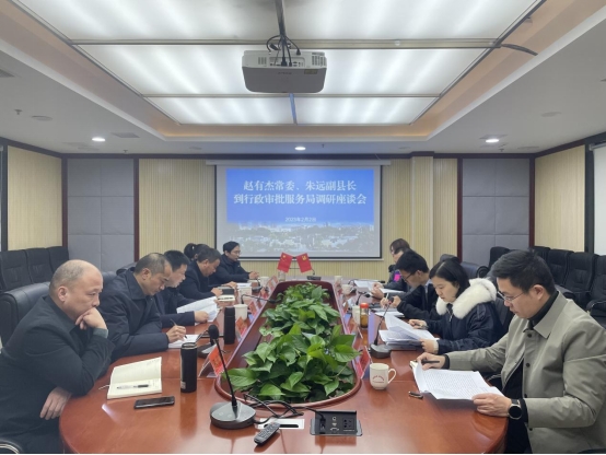 2月2日上午,县委常委、副县长赵有杰,副县长朱远到县行政审批服务局调研,了解工作开展情况,存在的问题以及新年工作规划,县政府办副主任黄团国、潘炳煌等陪同。