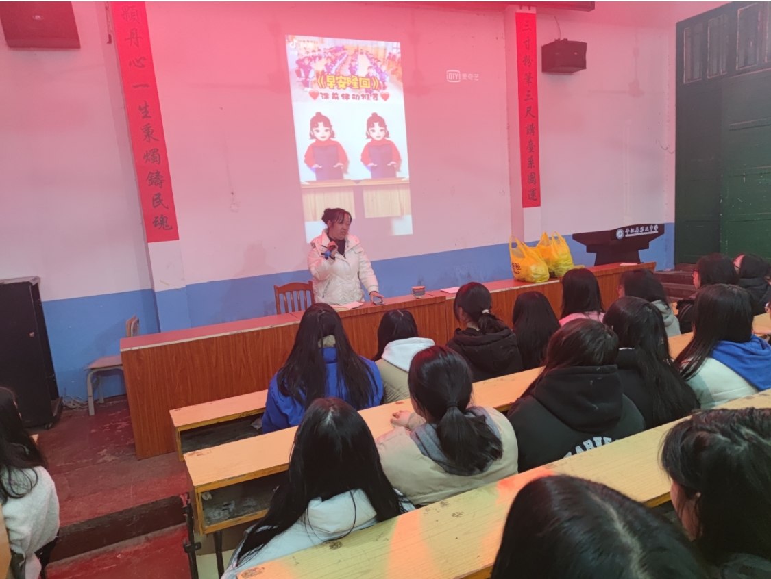 为加强女生的自我保护意识,提高面对危险情况时的防范能力,促进女生身心健康成长,2月23日晚7点,平江五中在阶梯教室召开“园丁护蕾·健康成长”安全教育主题讲座,本次专题活动由该校女生辅导员何艳平老师主讲,高中部全体女生参加了此次专题活动。