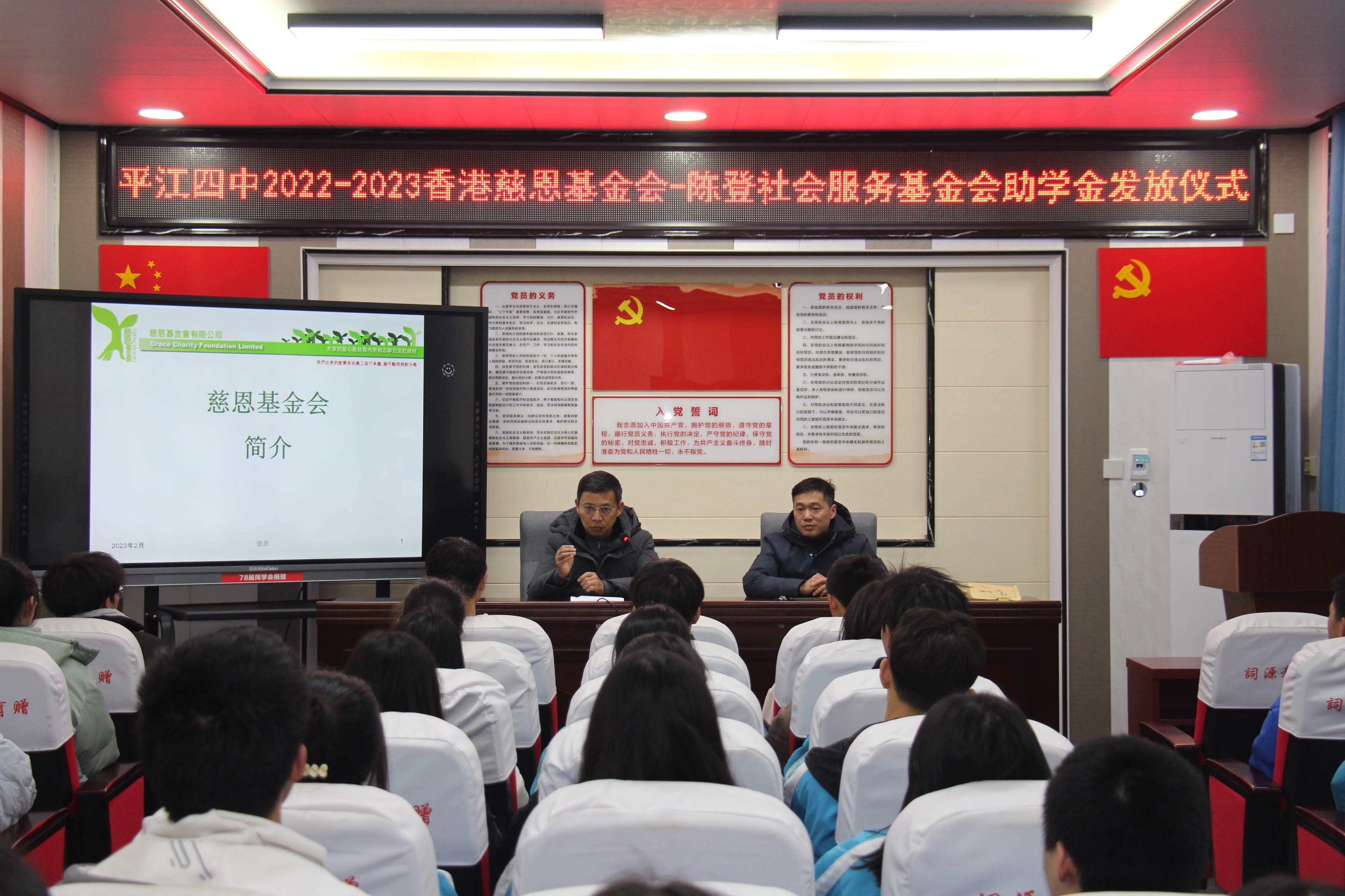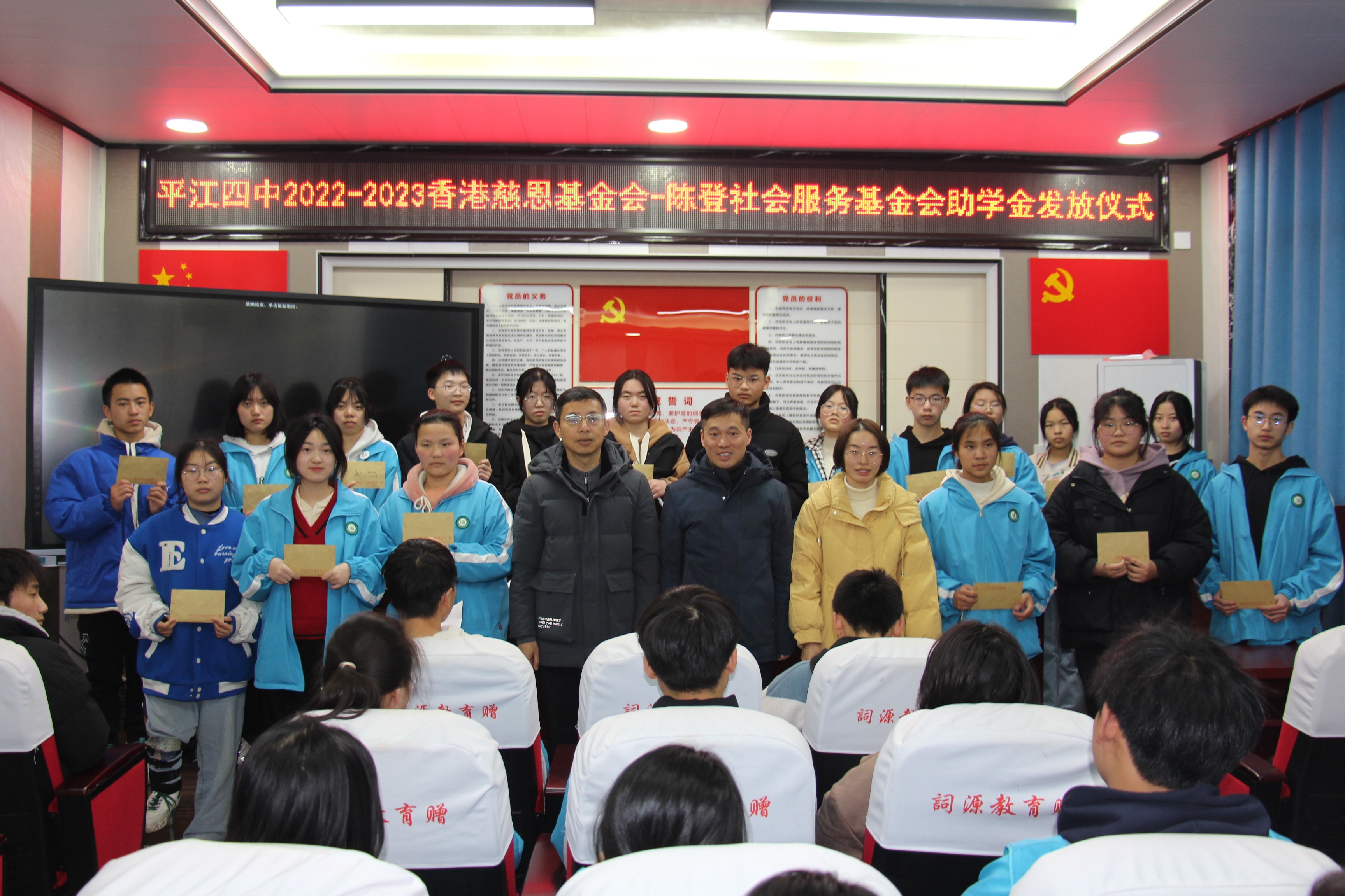 艰难困苦,玉汝于成。近日,平江四中在县教育局助学办的关怀下,顺利发放了香港慈恩基金会-陈登社会服务基金会2022-2023年度高中助学及生活补助金8万元整,为该校63名勤奋上进而家庭贫寒的学子带来了春雨般的甘霖。香港慈善人士的拳拳爱心善举,增强了受助学生迎难而上的自信心,纷纷表示将以优异的成绩报效祖国、感恩社会,长大后做一个对社会有贡献的人。