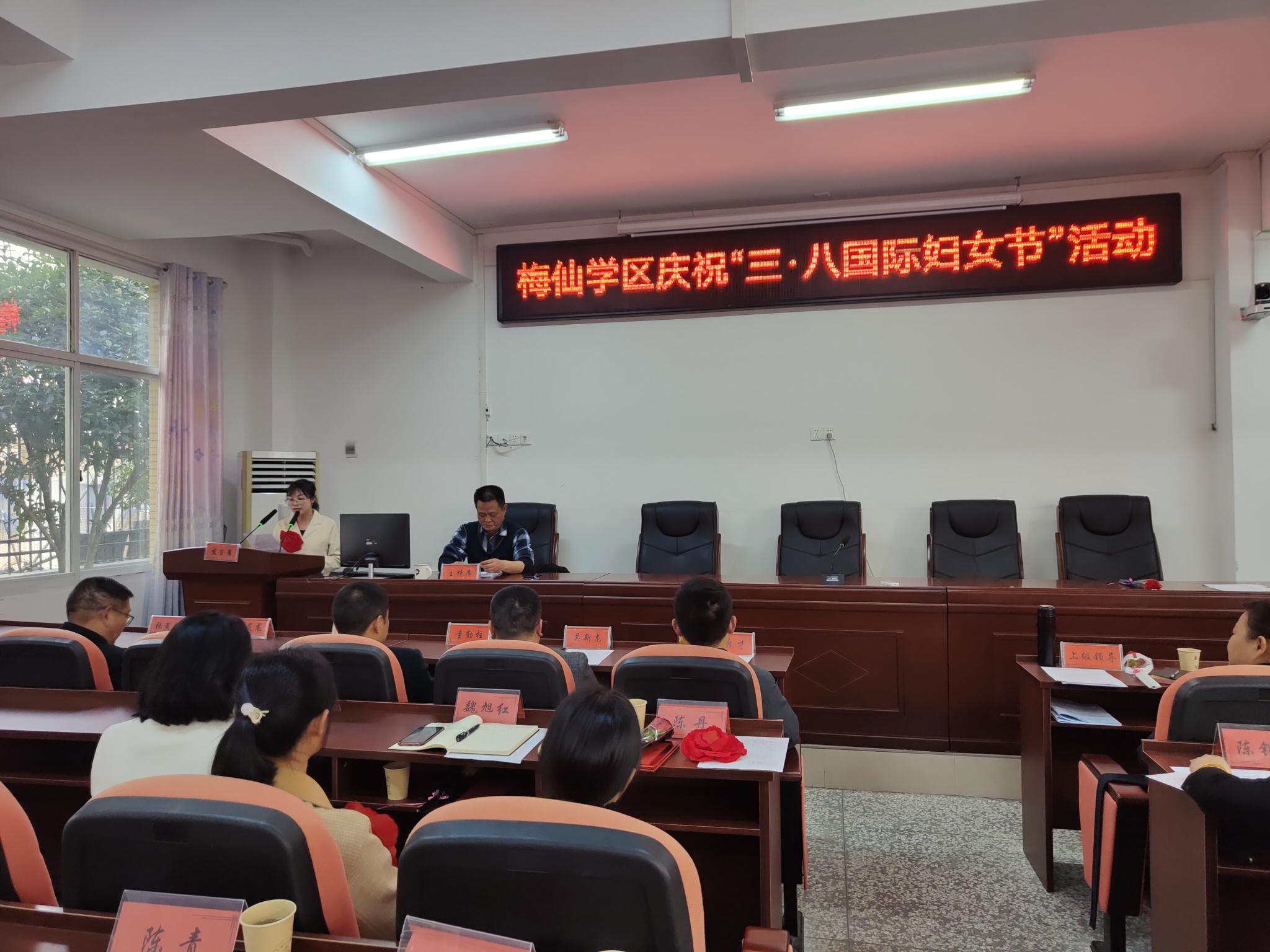 “谁说红颜不封侯,谁说女子不如男,想想武则天,瞧瞧花木兰,是我们撑起了梅仙教育的半边天!让我们用最美丽的笑容兼顾事业和家庭,用最蓬勃的青春描绘属于我们的湛蓝天空,用最饱满的真情热爱我们的事业,用最强烈的奉献精神谱写梅仙教育战线女性的风采。”