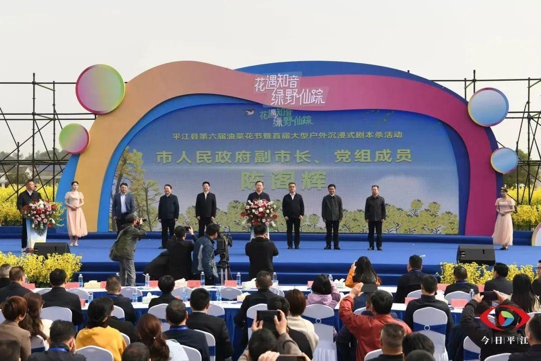 副市长陈阁辉宣布平江县第六届油菜花节暨首届大型户外沉浸式剧本杀活动开幕。