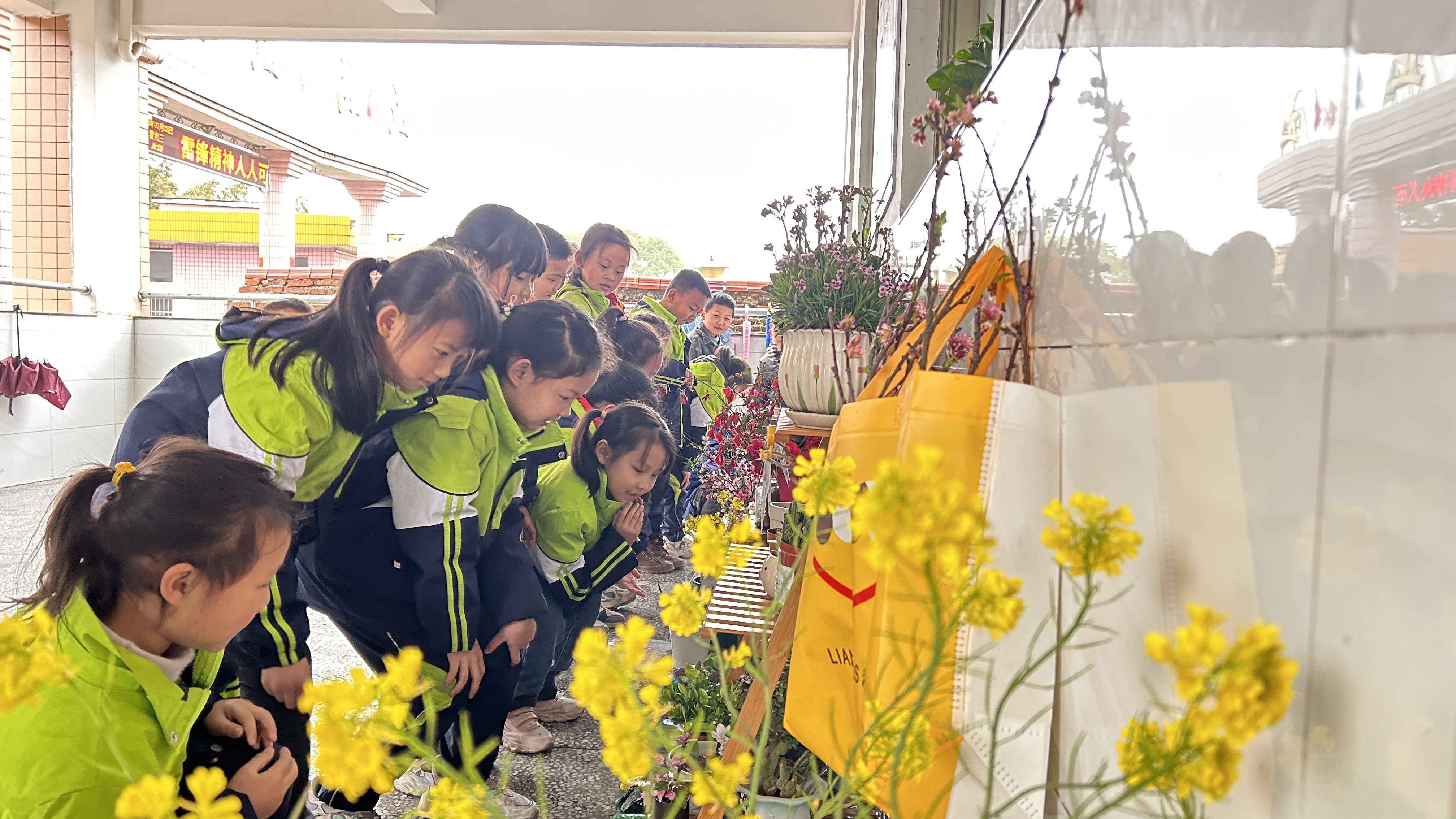 3月23日,在伍市镇伍市学校208班教室里,几颗小脑袋围在一起热烈地讨论着花花草草。鲜红的映山红,淡粉的桃花,洁白的梨花,如丝绒般的红檵木,鲜嫩得能掐出水的绿萝……这群孩子把春天“装进了”教室里。